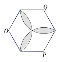 9. 如图,正六边形边长为 1,分别以正六边形的顶点 O、P、Q 为圆心,以 1 为半径作圆弧,则阴影部分的面积为 ( )